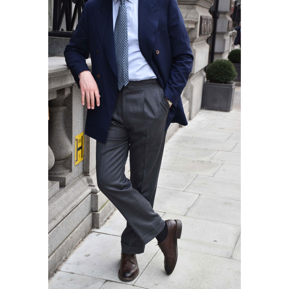 Le tissu le plus solide et le plus polyvalent pour un pantalon habillé est le Cavalry Twill. Notre préférence sur le marché, le Cavalry Twill de Dugdale Bros & Co, provient du liasse Invincible et fait honneur à son nom. Cette nuance de gris Cavalry Twill, référence INV034, est le gris moyen qui, étant une couleur neutre, va avec absolument tout.