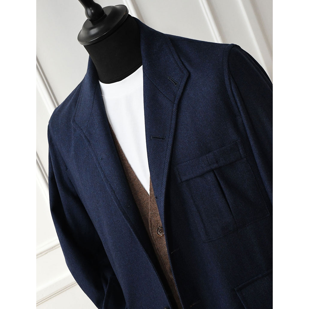 Écharpe en Cachemire Borderland Beige Navy - Begg & Co