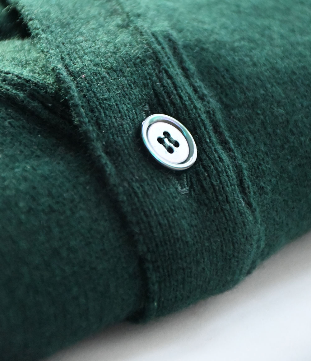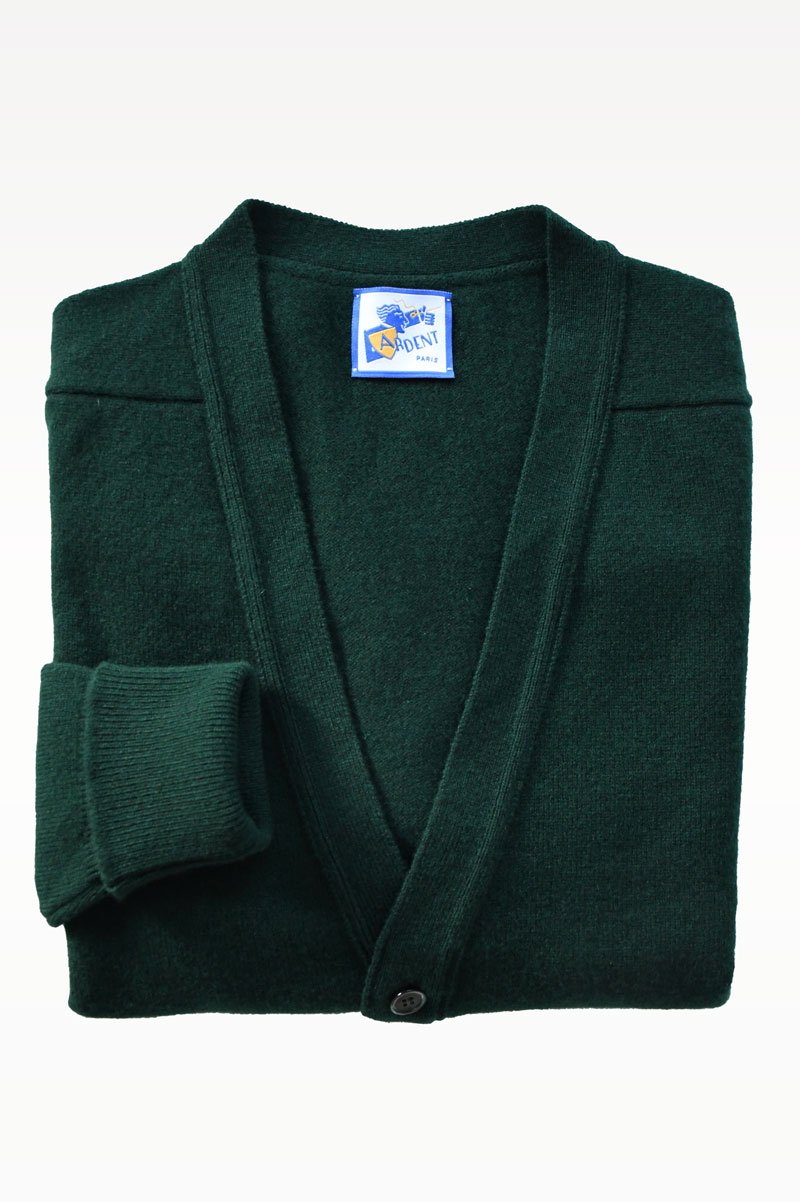 Le pull Cardigan Vert forêt Laine d’agneau – Ardent fait partie de la collection de prêt-à-porter intemporelle d’Ardentes Clipei.
