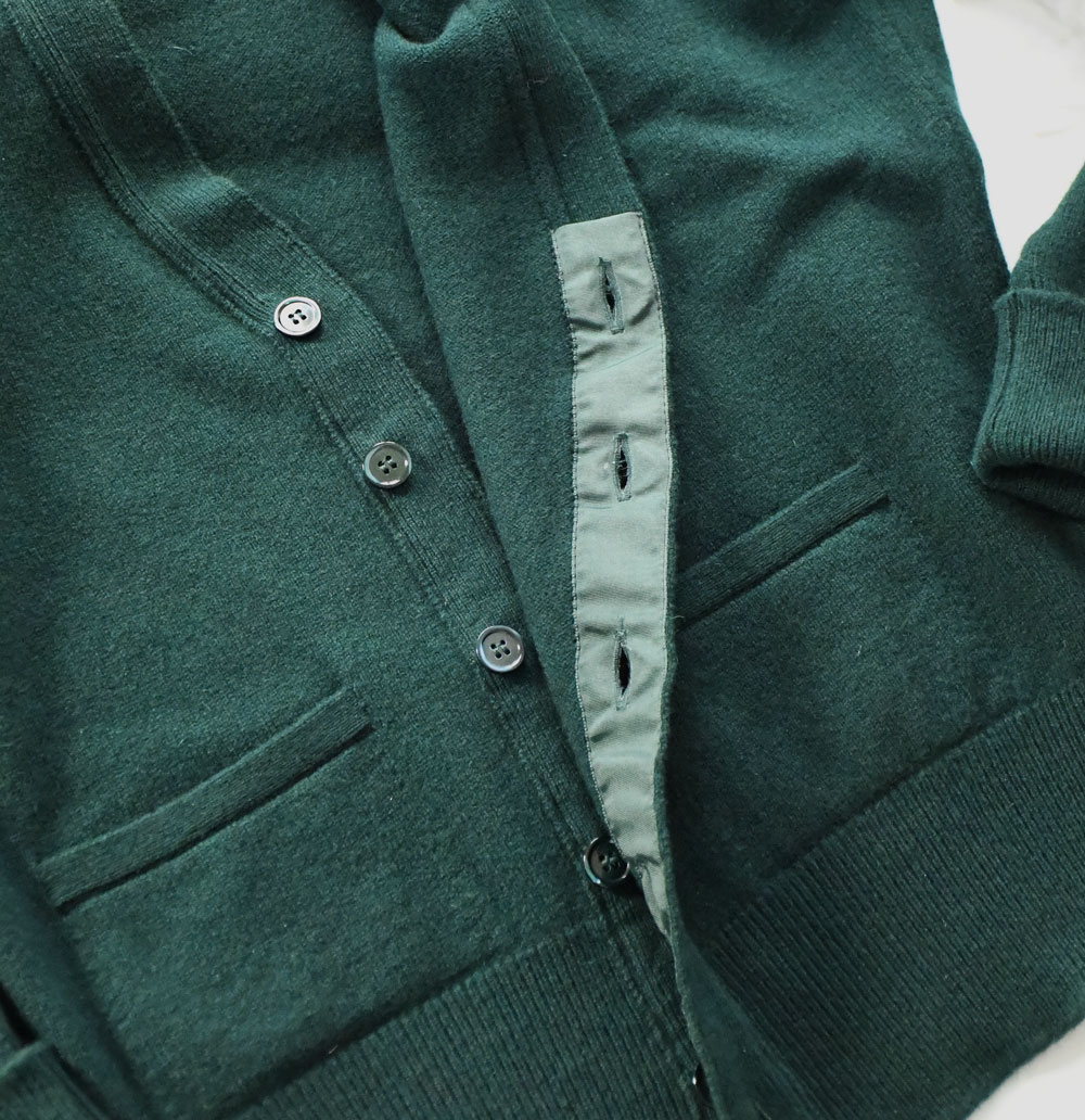 Avec un tissage doux et dense pour plus de durabilité, ce cardigan est fait pour être porté aussi bien sous une veste que seul. Tissé dans une teinte vert forêt, il est facile à associer avec une large gamme de couleurs plus foncées comme plus claires. La couleur profonde s’associe particulièrement bien avec des tons gris moyen ou terreux tels que le beige et le marron et le blanc crème. Ce modèle de cardigan taille normalement, vous pouvez partir sur votre taille habituelle. Si vous avez un doute sur votre taille, contactez-nous via Instagram ou envoyez-nous un email à contact@ardentesclipei.com