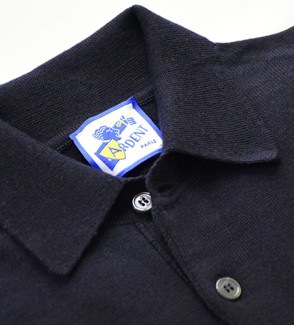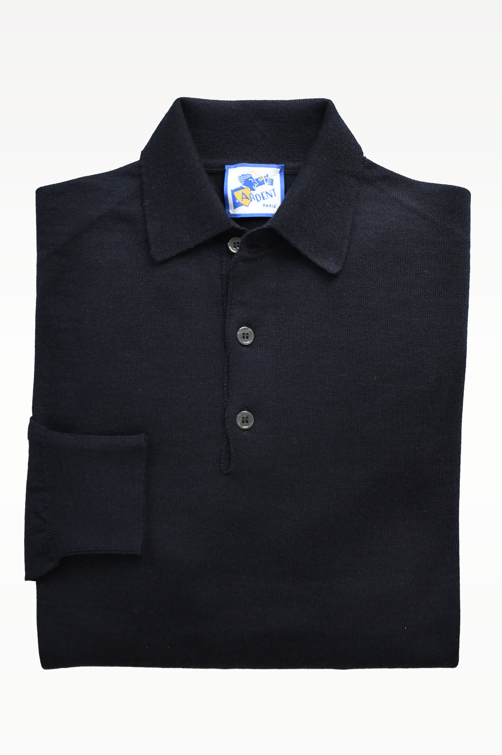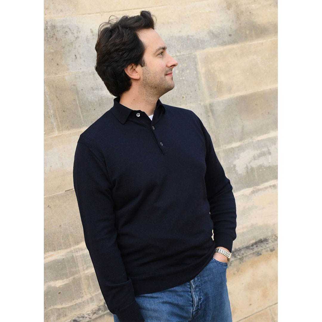 Le Pull à Col Polo Bleu marine en laine mérinos Ardent fait partie de la collection de prêt-à-porter intemporelle d’Ardentes Clipei Coupe et détails Laine mérinos