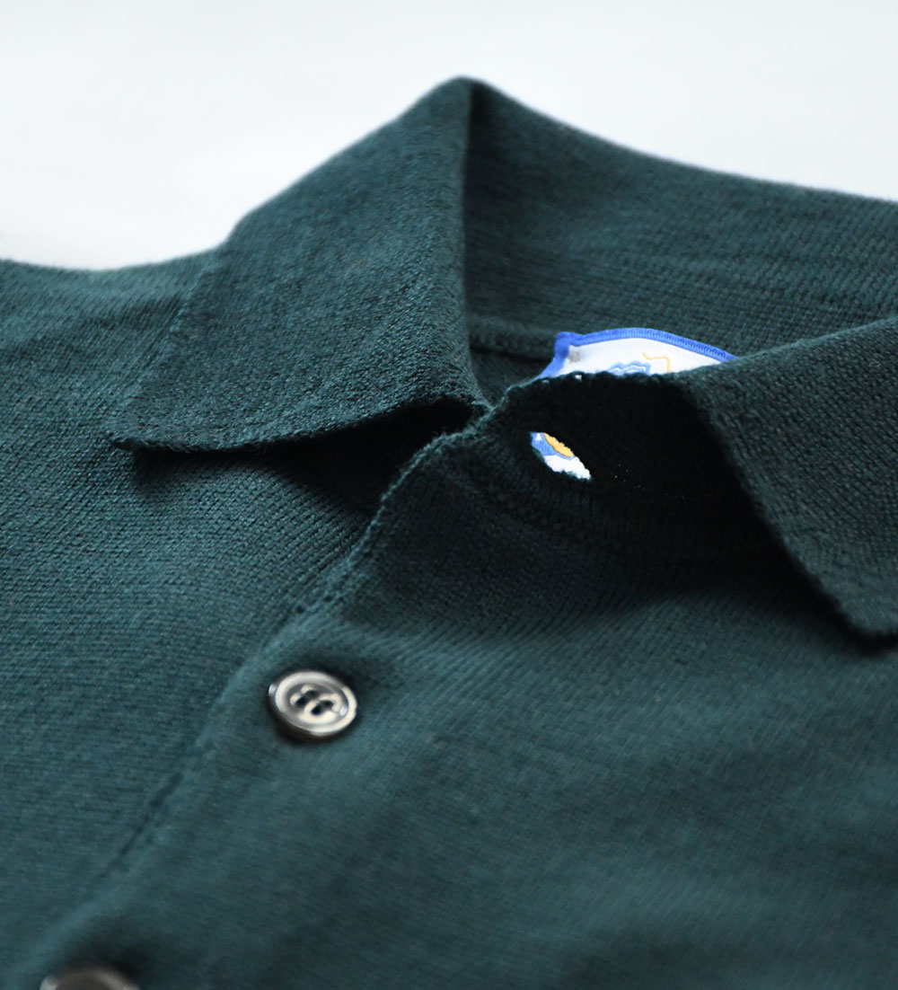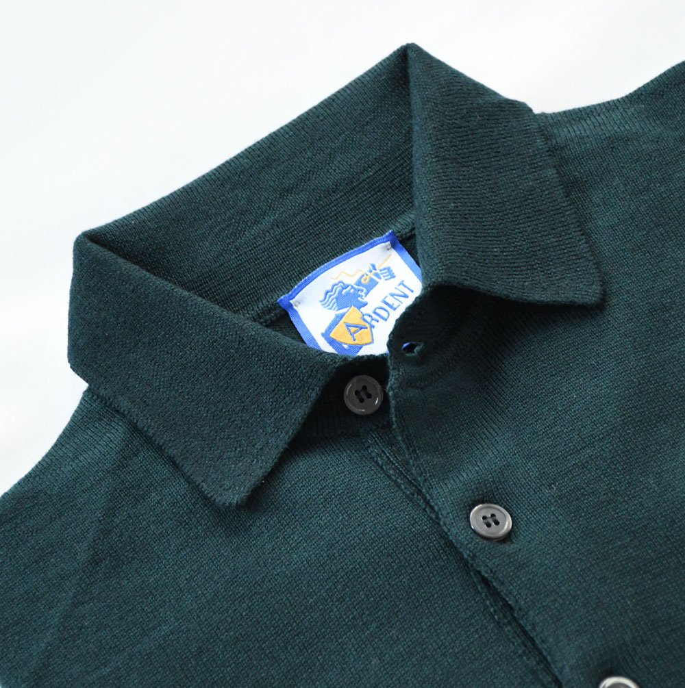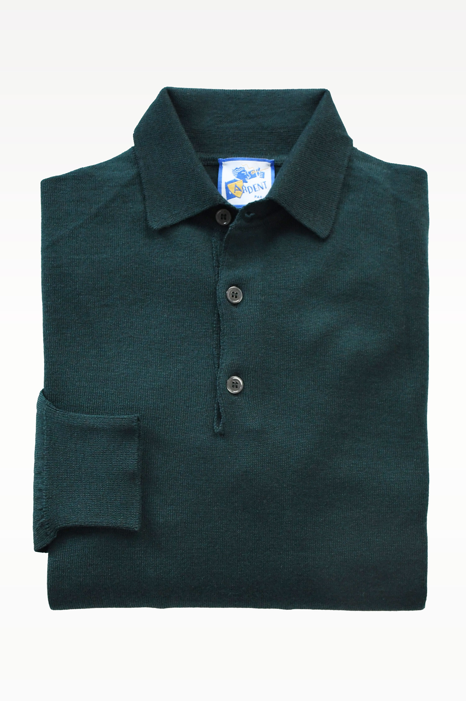 Le Pull à Col Polo Vert forêt en laine mérinos Ardent fait partie de la collection de prêt-à-porter intemporelle d’Ardentes Clipei